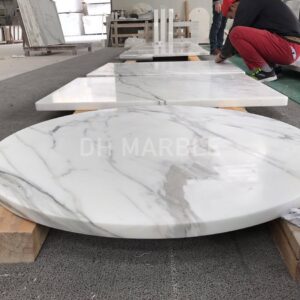 La table en marbre Calacatta attire l’attention par son design élégant et esthétique. Il apporte la pureté et la noblesse du blanc sur les tables. Ce marbre blanc d’origine italienne présente des veines grises. Grâce à la structure unique des récipients, chaque assiette a une apparence unique. Ce marbre rare et de haute qualité est utilisé dans de nombreux domaines. Les tables font partie des endroits où il est le plus utilisé.